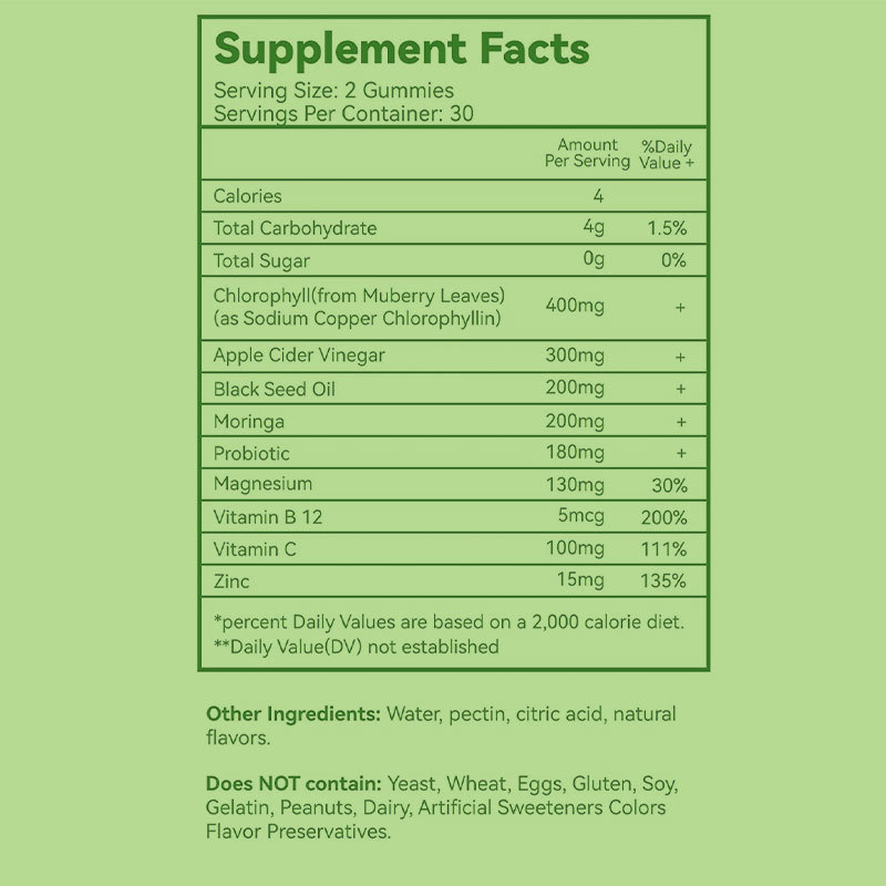 Ingrediente Principal: Clorofila, Vinagre de Sidra de Manzana, Aceite de Semilla Negra
